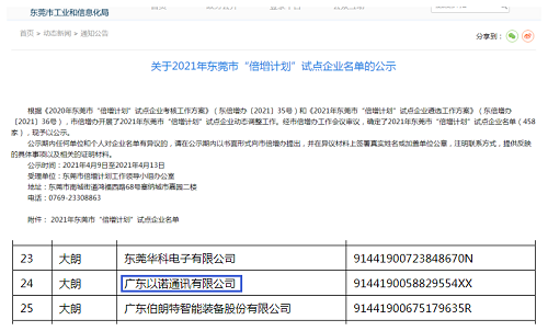 近日,東莞市倍增計劃工作領(lǐng)導(dǎo)小組辦公室發(fā)布了2021年東莞市“倍增計劃”試點企業(yè)名單,福日電子二級控股子公司廣東以諾通訊有限公司入選該名單。此次認定的“倍增計劃”試點企業(yè)重點聚焦在東莞市制造業(yè)企業(yè)、生產(chǎn)性服務(wù)業(yè)企業(yè)、軟件與信息技術(shù)服務(wù)業(yè)企業(yè)。