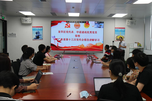 隨后,中諾通訊優秀黨務工作者、以諾通訊黨支部書記陳會芳《貫徹落實習近平總書記來閩考察重要講話精神 建強國有企業基層黨組織戰斗堡壘的實施方案》進行了講解龍華區黨代表、中諾通訊優秀黨員張恒宣講廣東省第十三次黨代會報告。