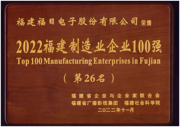 12月7日下午,2022福建企業(yè)100強發(fā)布大會在莆田舉行,會上發(fā)布了“2022福建企業(yè)100強”“2022福建制造業(yè)企業(yè)100強”“2022福建服務業(yè)企業(yè)100強”“2022福建戰(zhàn)略性新興產(chǎn)業(yè)企業(yè)100強”4個榜單。福建福日電子股份有限公司連續(xù)4年入圍福建制造業(yè)企業(yè)100強,位列第26名,較去年提高8個位次,排名再創(chuàng)新高。這是繼該公司今年首度入圍“中國制造業(yè)企業(yè)500強”后的又一重大突破。